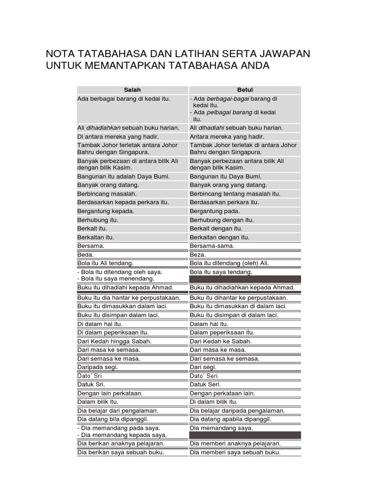 Nota Tatabahasa Dan Latihan Serta Jawapan Untuk Memantapkan Tatabahasa Anda Pdf