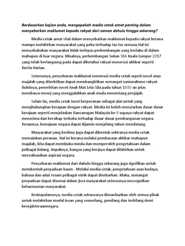 Akhbar dan majalah juga memainkan peranan penting dalam menyebarkan maklumat kepada penduduk tempatan. November 10 2019 November 10 2019 by.
