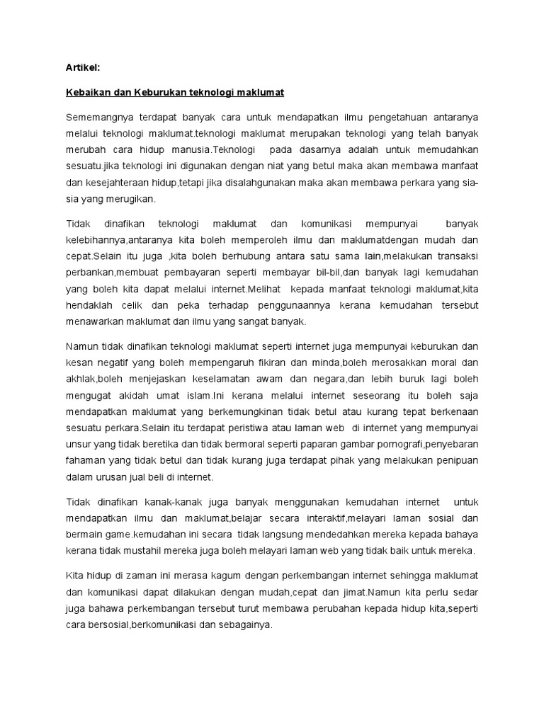 Faedah Penggunaan Teknologi dalam Pendidikan Literasi Bahasa Melayu Kepentingan penggunaan teknologi dalarn pendidikan literasi Bahasa Melayu dewasa ini tidak dapat disangkallagi. Dalam setiap zaman yang dilalui oleh manusia telah menempuh. Contoh Karangan SPM Kebaikan Teknologi Maklumat dan Komunikasi ICT kepada masyarakat dan negara.